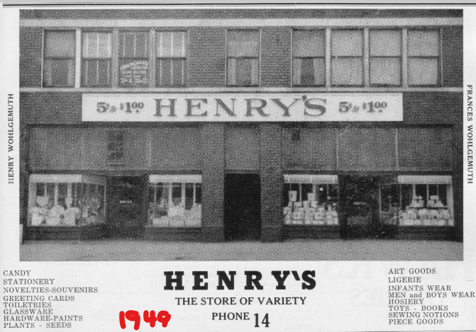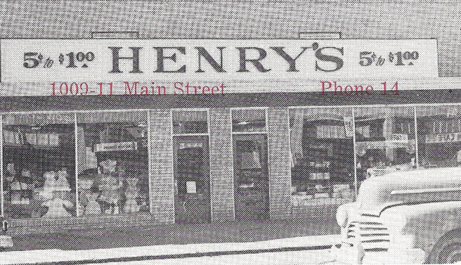 | Henry and Frances started "Henry's 5c to $1.00" store in Oct. 1939 at 1014 W. Main (Block 48). |
