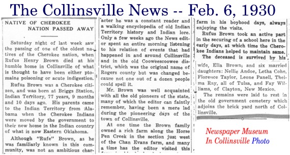 This web site is brought to you by the Newspaper Museum In Collinsville and the other advertisers appearing on these pages. If you would like to provide content or advertisements ... call Ted Wright (918) 371-1901 or send email to wrightted@aol.com. |