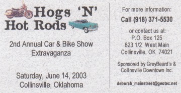 Hogs 'N' Hot Rods -- COLLINSVILLE, OKLAHOMA |