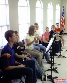 (The Crimson Sunsets) from the Collinsville High School band perform Monday