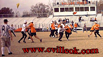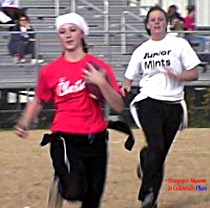 Dane Upky sends his flag flying as this play between the Freshman and the Juniors