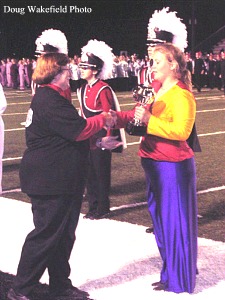Major Cathy Duncan accepts the trophy for the Collinsville Crimson Cadets. They