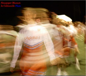 | This ghostlike cheerleader photo (above) from halftime of a recent game reminded me of Halloween. The Collinsville American Legion, Downtown Inc, and Chamber of Commerce will all be supporting youth Halloween activities downtown on Friday Oct. 31 from 5 to 7pm. The home high school football game with Pryor follows at 7:30 |