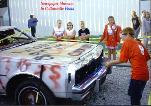 was the scene after the game as a bashed car, being used for a fund raiser,