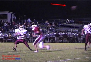 receiver (arrow) was on the 24 yard line when the photo was taken. The final