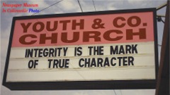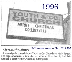 The Youth & CO signs came down July 23, 2004 and were replaced by the new Trinity Faith Church signs. |